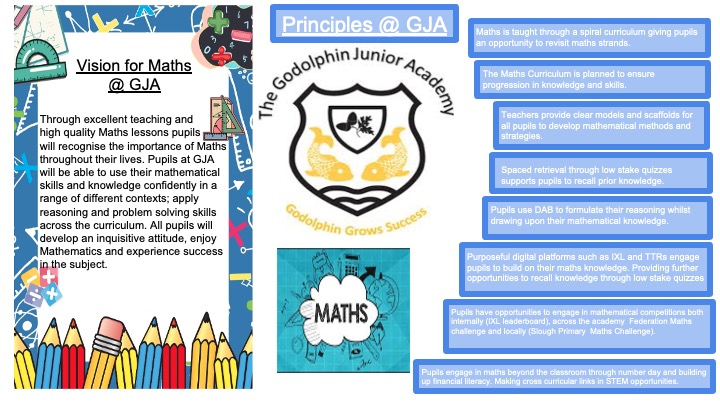 At Godolphin Junior Academy, these skills are embedded and developed consistently, through well sequenced and progressive Maths lessons, pupils are provided the opportunity to obtain mastery. Maths is essential to everyday life and provides a foundation for understanding the world.