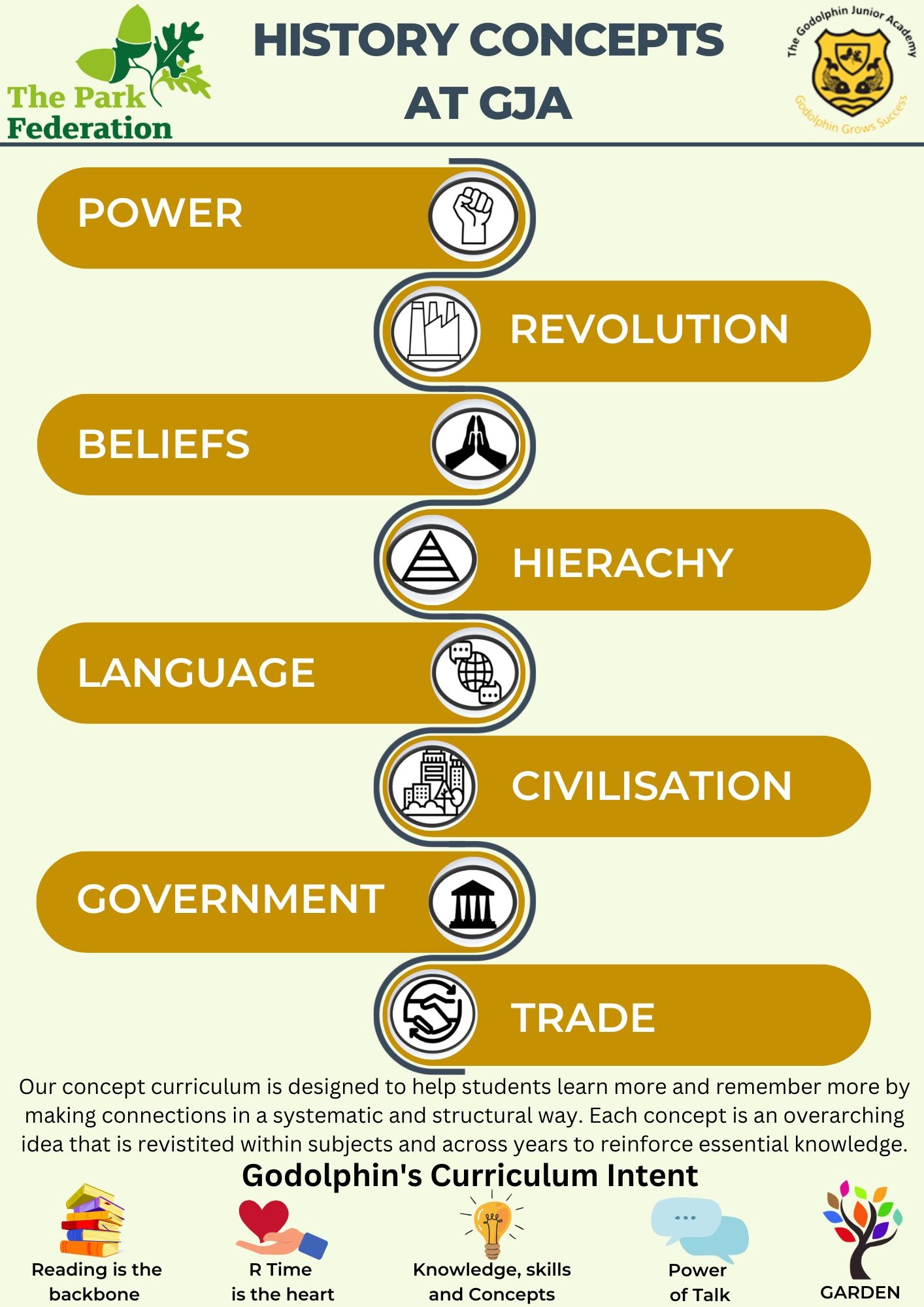 View the History concept progression booklet below. This outlines how each concept or 'big idea' interlinks within each History topic so that children can make connections which helps them to learn more and remember more over time.